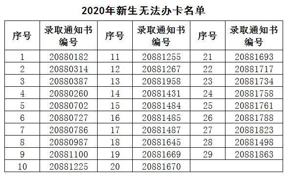 同时寄出的有新生入学须知、用于学费缴交的中国农业银行银行卡。个别新生因个人信息原因无法办卡,没有附银行卡(详细名单另附)。
