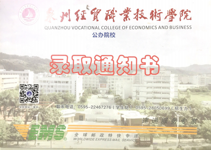 新生录取通知书物流单号查询-欢迎报考公办高职院校泉州经贸学院! http://zs.qzjmc.edu.cn/lqcx/xslqtzswldhcx.htm